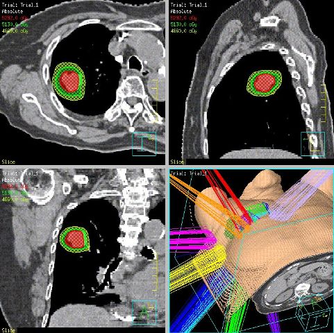 放射線治療装置を更新し、平成26年6月より放射線治療を再開いたしました。従来の放射線治療に加えて精度の高い先進的な放射線治療が可能となり、肺腫瘍へのピンポイント治療も行っています。