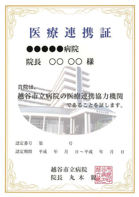 医療連携協力機関としてご登録いただいた医療機関には「医療連携証」を交付します。医療連携証を窓口等にご掲示いただくことで、当院との医療連携に積極的に取り組んでおられることを患者様にアピールしていただけます。