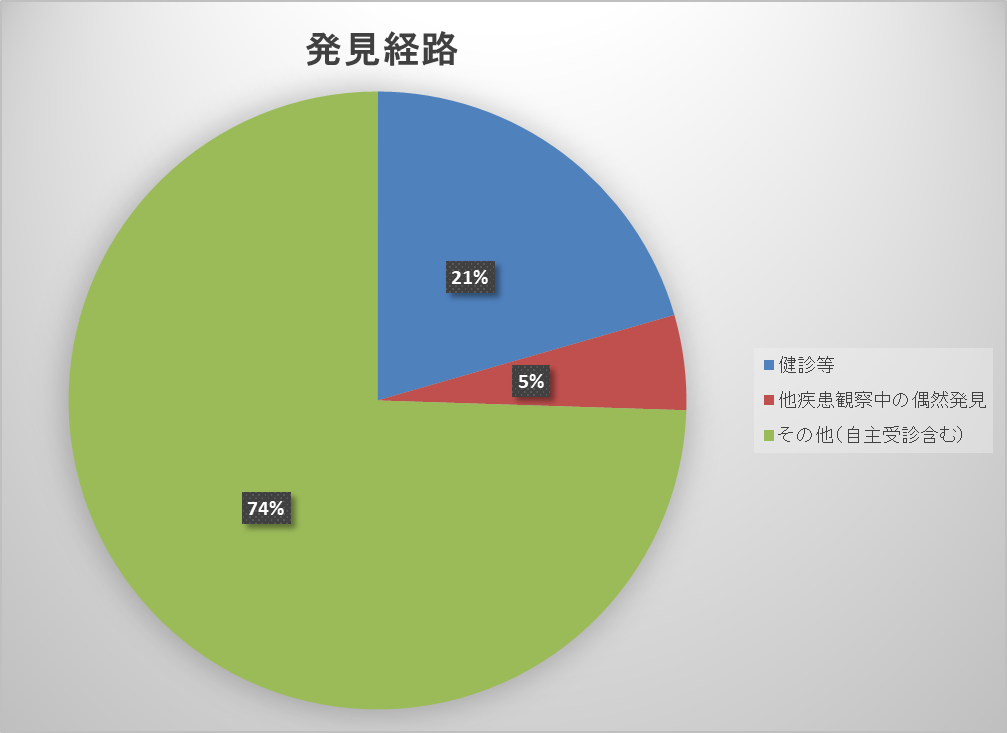 他疾患経過観察中の偶発発見 (他の疾患で経過観察中に施行された検査等により、偶発的に発見) |