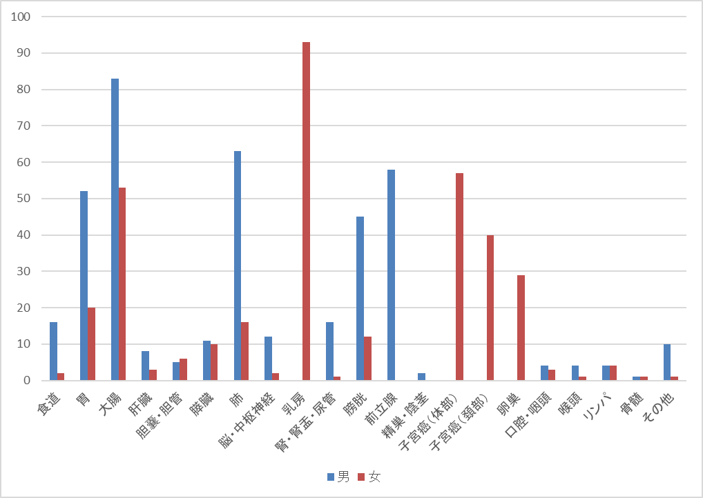 当院におけるがん登録データを年齢層別や部位別にまとめました。
